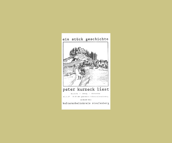 aus: Ein Stück Geschichte, Peter Kurzeck liest, IM-PULS Staufenberg, 18.11.1987